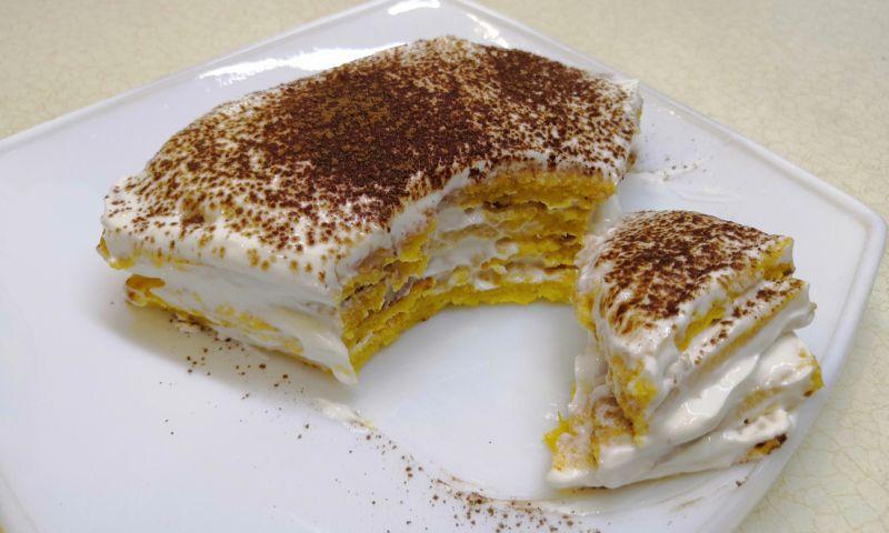 Я посипала зверху какао. У холодильник для просочення не ставила, тортик був ніжним та смачним.