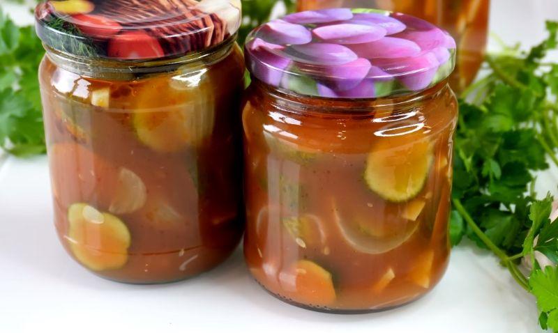 Вітання! Сьогодні я до Вас із рецептом огірків “в томатному соусі. Робила торік уперше, на пробу, взимку моментом пішли усі банки. Чоловік не дуже любить подібні заготівлі, а я прям, готова була їсти цей салат днями. Цього року зроблю якомога більше. Ще один плюс, можна переробити перерослі огірочки.