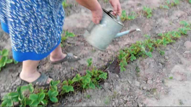 Зараз вношу нітроамофоску. Це комплексне добриво містить азот, фосфор та калій. Азот зараз необхідний кущам для росту молодого та здорового листя. А фосфор і калій якраз потрібні рослинам для того, щоб закласти квіткові бруньки. У 10 літрах води розводжу 1 ст. л. добрива та поливаю полуницю.