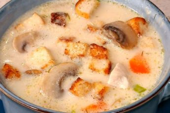 Рецепт смачного грибного супу з куркою та плавленим сирком
