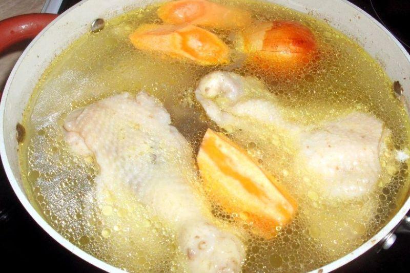 Ну і перший курячий бульйон рекомендується зливати. А якщо ви не звикли так готувати, тоді потрібно обов’язково зняти накип.