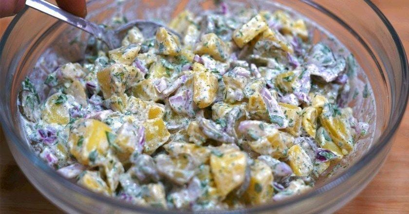 Цей ситний німецький салат готується з дуже простих та бюджетних продуктів. Проте яке поєднання виходить! Особливу увагу слід звернути на заправку. Саме завдяки цьому соусу звичайні інгредієнти перетворюються на приголомшливу страву.