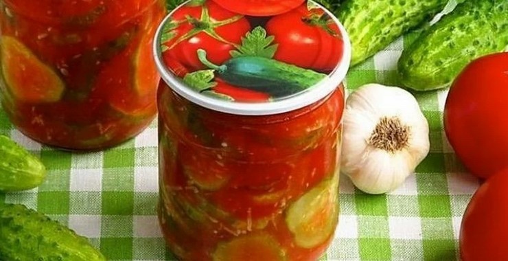 Огірочки і помідори в томаті – це дуже смачно! Готується легко і просто, з найдоступніших інгредієнтів, без стерилізації!