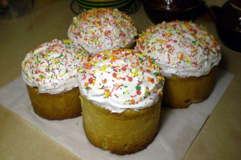 3 ЕТАП. Наповніть форми на 1/3 тістом, дайте піднятися до країв та випікайте при 180 градусах до готовності. Змастіть охолілі паски глазур’ю і посипте кондитерською посипкою.