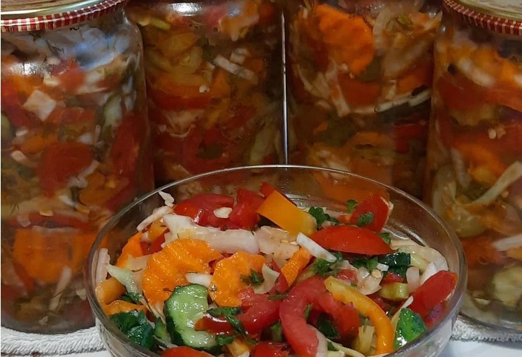 Дуже смачний і яскравий овочевий салат на зиму! Готується з найдоступніших інгредієнтів швидко і просто!