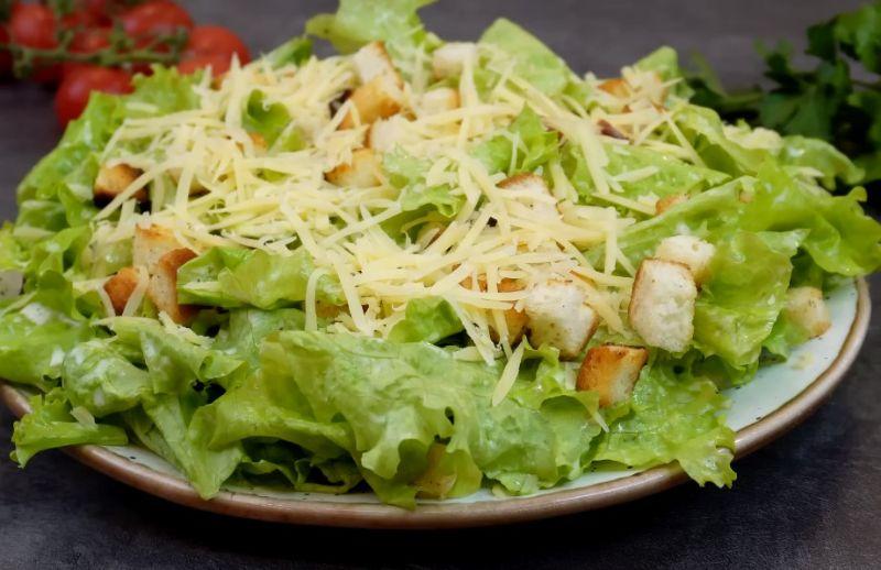 Базовий салат “Цезар” готовий, за рахунок соусу виходить дуже смачний, можна подавати до столу. Як я вже говорила, я поділилася базовим рецептом, за бажанням Ви можете додати креветки або курку, яйця, і помідори.