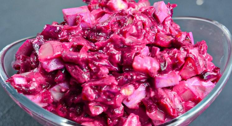 В якості заправки рекомендую використовувати майонез, але також добре поєднується з буряком сметана більше 20% жирності, натуральний йогурт без цукру та інших добавок.