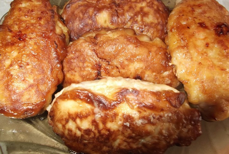 З приготованого фаршу сформувати коржик, покласти на нього приготовлену начинку і невеликий шматочок вершкового масла. Далі, сформувати котлету, вмочити в кляр, обсмажити на розігрітій з олією сковорідці з усіх боків до золотистого кольору. Приємного вам апетиту!!!