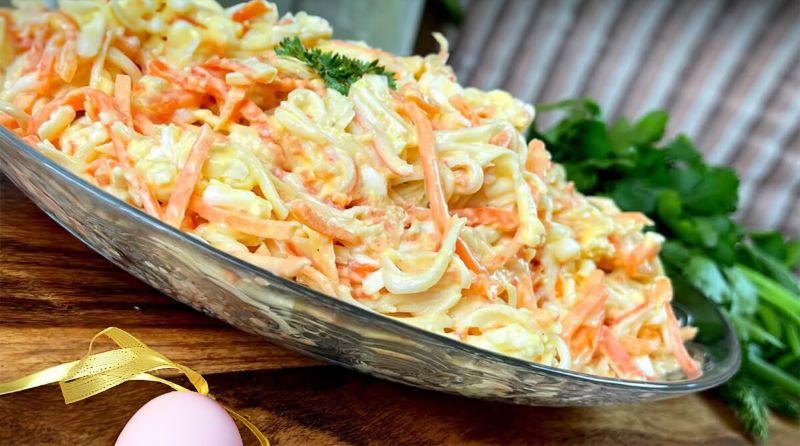 Шукаєте рецепт смачного та швидкого пасхального салату? Спробуйте наш рецепт святкового салату з морквою, крабовими паличками, яйцями та плавленим сиром. Він готується за кілька хвилин і гарантовано зачарує всю родину!