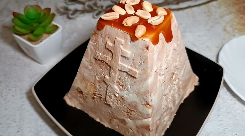 Можна прикрасити карамеллю та посипати горішками. Таку паску можна приготувати заздалегідь і просто зберігати в морозильнику. Переставити з морозилки в холодильник і дати відтанути протягом 2-3 годин.