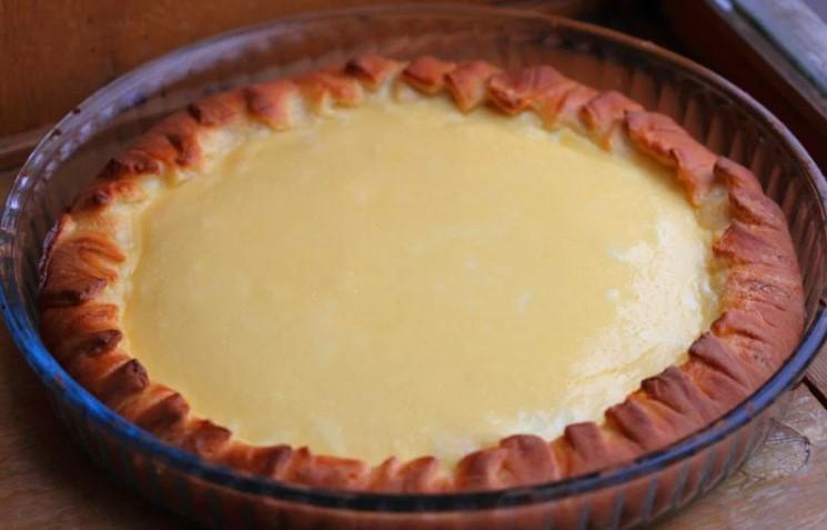 Форму для випічки застеляємо пергаментом або просто змащуємо олією. Викладаємо тісто, потім начинку. Краї тіста трохи загинаємо всередину.